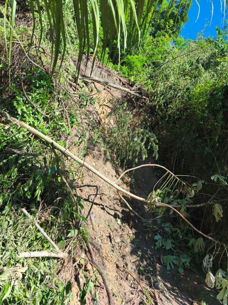 Em entrevista ao Portal RIOS DE NOTÍCIAS, o morador relatou que a rua está seriamente comprometida. Imagens enviadas à reportagem mostram a área tomada por vegetação densa, além da queda de árvores, consequência direta do deslizamento de terra.