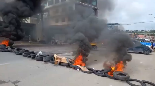 MANAUS (AM) – Moradores do bairro Distrito Industrial, na zona Leste de Manaus, realizaram uma manifestação e fecharam a avenida Pista da Raquete. Eles bloquearam a via com pneus e colocaram fogo, impedindo a passagem de veículos.