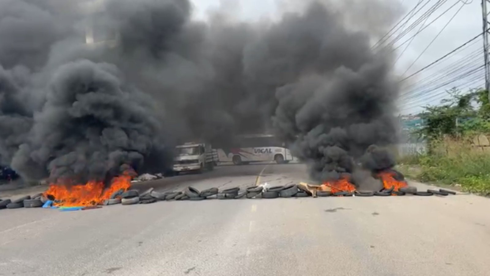 Em vídeos gravados por moradores da região mostram que os manifestantes incendiaram pneus e bloquearam a pista, impedindo a passagem de motoristas que transitavam pelo local.