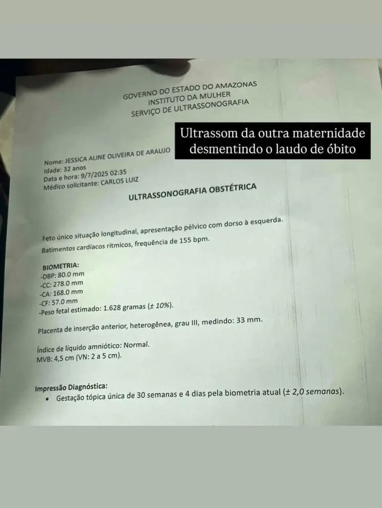 Sobre o caso da Maternidade Instituto da Mulher Dona Lindu, o Complexo Hospitalar Sul informou que a investigação interna apontou óbito fetal intrauterino por nó verdadeiro de cordão umbilical, classificado como evento raro e imprevisível, conforme análise da Comissão de Óbito Materno-Fetal.