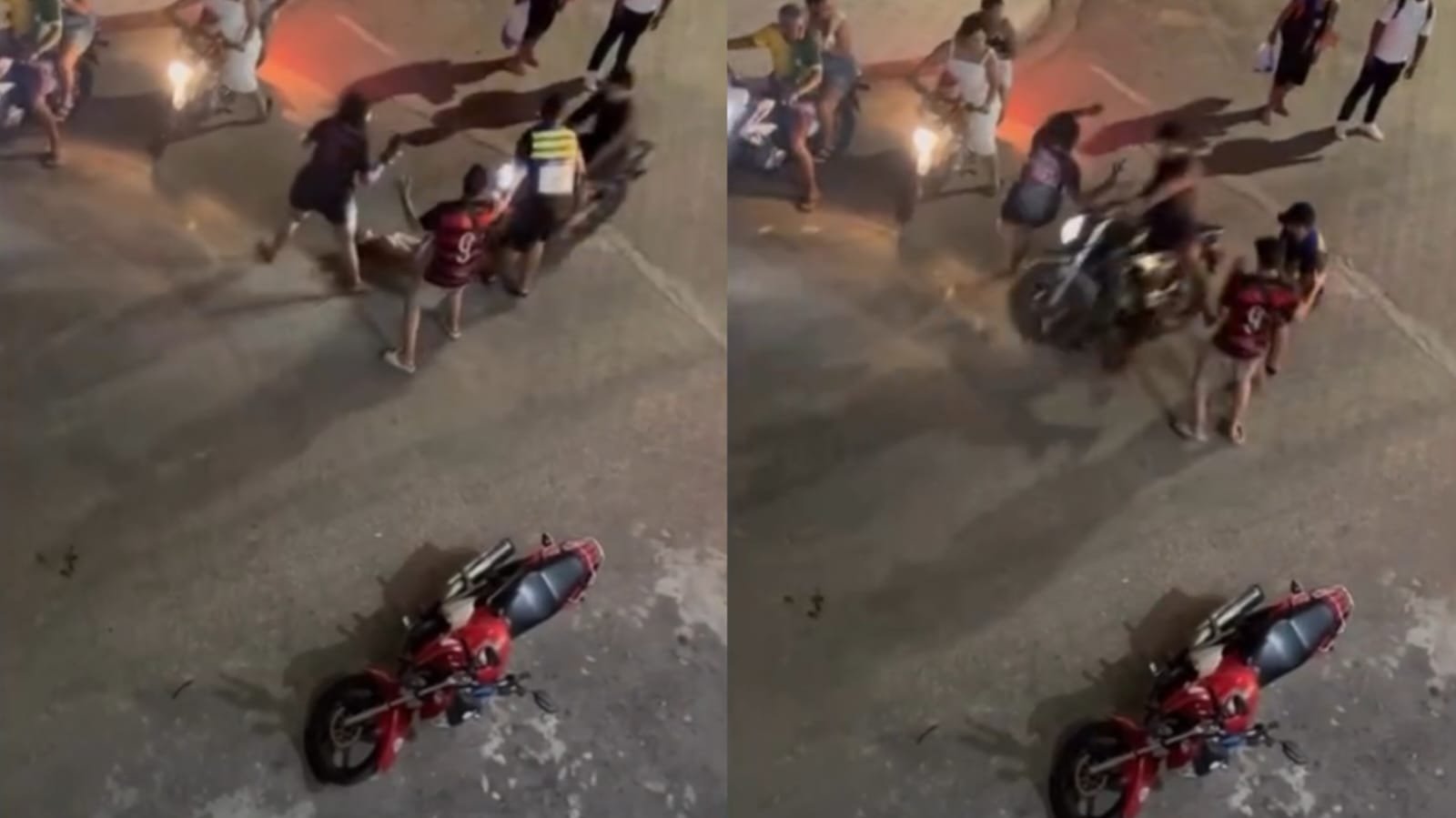 O vídeo repercutiu nas redes sociais e causou susto entre moradores que presenciaram a cena. Em outro trecho, o suspeito aparece aparentemente desacordado, possivelmente após ter sido agredido. No entanto, ele se levanta logo após ser atingido pela motocicleta. “O homem ficou bom na hora”, comentou um internauta.