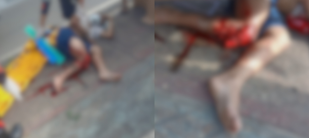 Moradores da região prestaram os primeiros atendimentos, improvisando um curativo com papelão para conter o ferimento até a chegada do Serviço de Atendimento Móvel de Urgência (Samu).