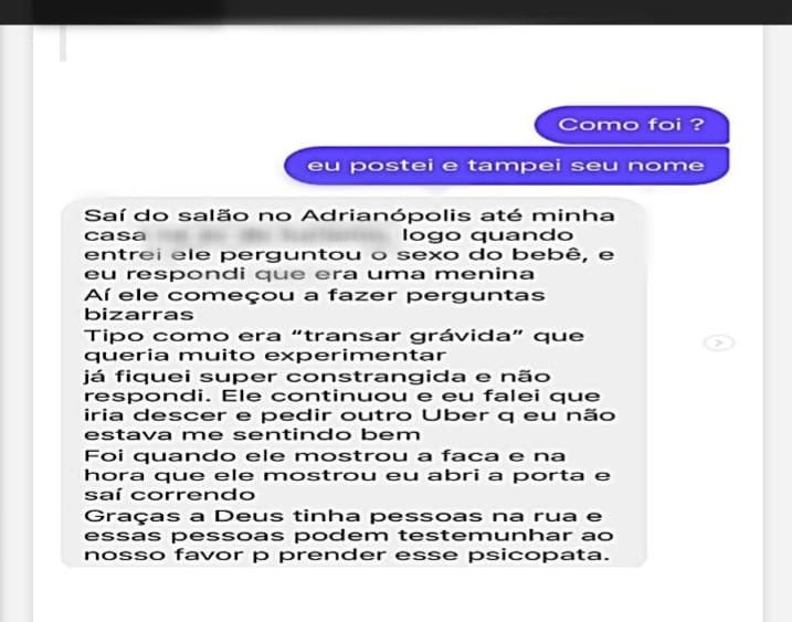 Uma das mulheres que quase foi vítima relatou que estava com uma criança de dois anos no veículo e desconfiou da conduta do motorista. “Ele começou a entrar em várias ruas e eu fiquei com medo. Acho que não aconteceu nada porque eu estava com a criança”, disse a testemunha.