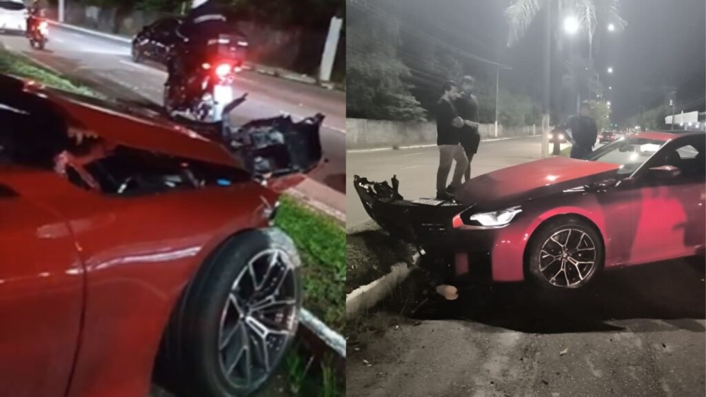 Motorista dorme ao volante e bate BMW em meio-fio de avenida em Manaus