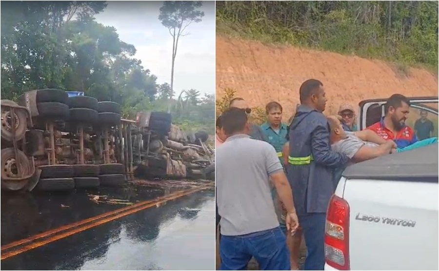 MANAUS (AM) – Um caminhão-pipa tombou na manhã desta terça-feira, 18/11, no quilômetro 130 da rodovia AM-010, em Itacoatiara, interior do Amazonas. Moradores que passavam pelo local foram os primeiros a socorrer o motorista, enquanto equipes de resgate eram acionadas.