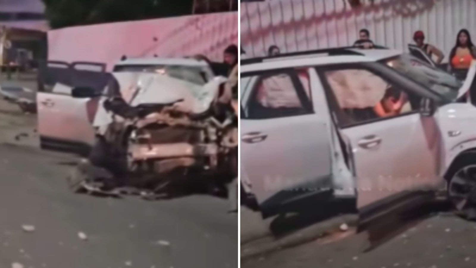 Segundo vídeos gravados por outros condutores que passavam pelo local, é possível ver que a frente do carro, modelo picape de cor branca, ficou completamente destruída após a colisão com a moto.