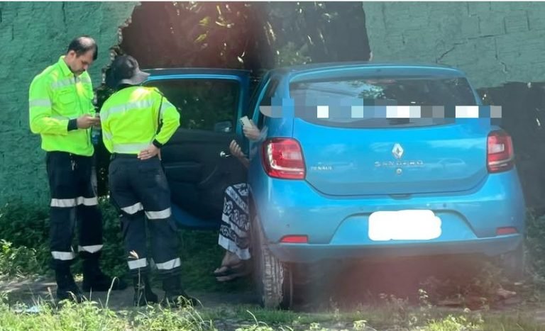 Segundo relato da condutora, o veículo — um Renault Sandero de cor azul — começou a apresentar falhas após passar pelo viaduto do Coroado, emitindo um forte cheiro de queimado e dificultando a movimentação do volante.