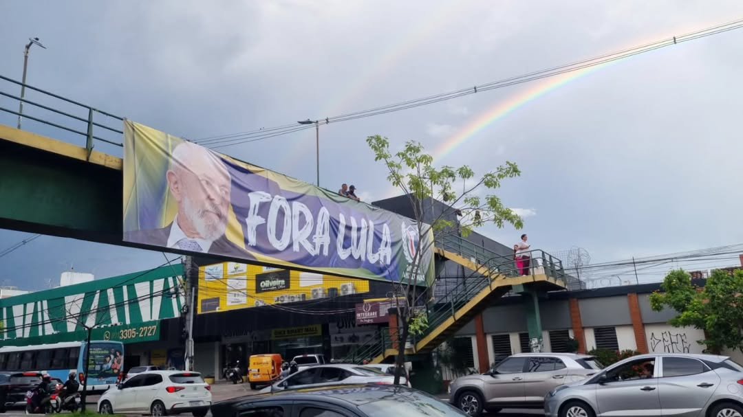MANAUS (AM) – O movimento conservador Direita no Amazonas estendeu, na noite de quinta-feira, 13/3, uma faixa com a frase “Fora Lula” na avenida Djalma Batista, no bairro Chapada, zona Centro-Sul de Manaus.