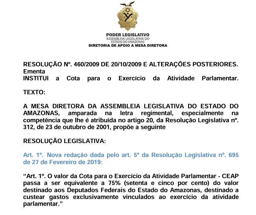 O procurador-geral de Justiça do Amazonas, Alberto Nascimento Júnior, contesta o art. 1º da lei 505/2021, que regula o ‘cotão’ e estabelece que a Cota para Exercício da Atividade Parlamentar (CEAP) dos vereadores deve ser equivalente a 75% do valor conferido aos deputados estaduais do Amazonas.