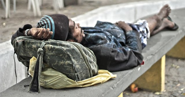 Homem em situação de rua dormindo na praça - (Foto: Reprodução)