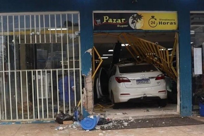 A Secretaria de Segurança Pública de Palmas (TO) informou que, “em um ato de fúria”, a mulher atropelou uma pessoa e colidiu com outro veículo ao tentar manobrar o carro para invadir a distribuidora em alta velocidade.