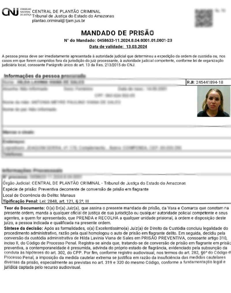 Durante o interrogatório, Hilda alegou ter agido por “impulso sob forte emoção”. Ela contou ao delegado ter recebido uma foto do noivo junto com a sua ex-mulher, em um bar no Conjunto Vieiralves, na zona Centro-Sul de Manaus.