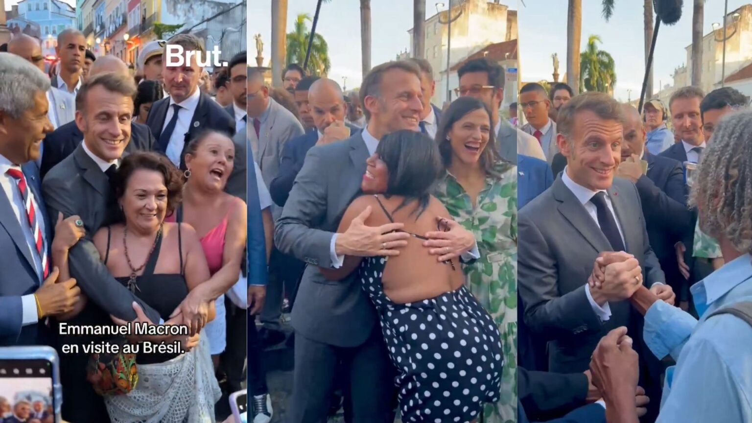 Durante a passagem pela capital baiana, o mandatário francês foi cumprimentado pela população, chegando a ser abraçado por algumas mulheres, que elogiaram sua aparência.