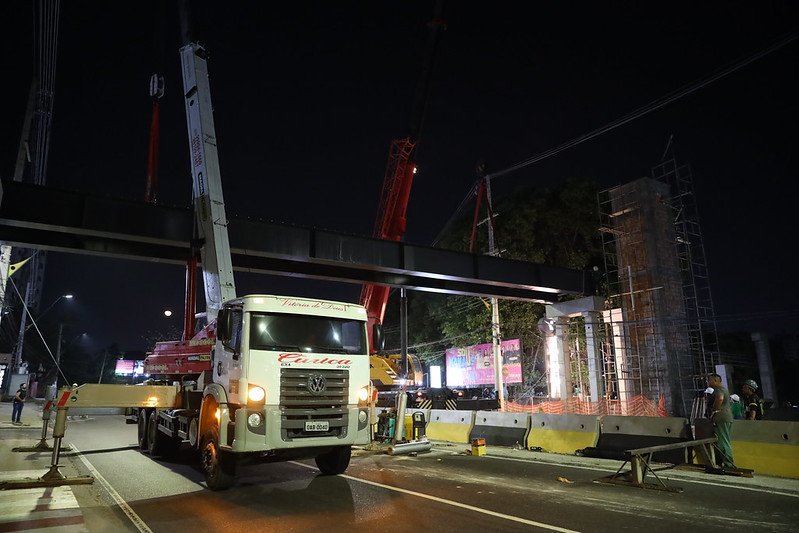 MANAUS (AM) – A instalação de uma viga metálica de 20 toneladas que vai servir de base para a nova passarela na avenida Ephigênio Salles, no trecho em frente ao Tribunal de Contas do Estado do Amazonas (TCE-AM), fez a obra realizada pela Prefeitura de Manaus chegar aos 70% de execução.