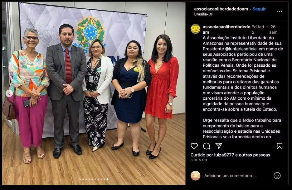 O Secretário Nacional de Assuntos Legislativos, Elias Vaz, recebeu Luciane em seu gabinete no dia 19 de março. Quase um mês depois, em 2 de maio, a mulher se reuniu com o Secretário Nacional de Políticas Penais (Senappen), Rafael Velasco Brandani; com o Diretor de Inteligência Penitenciária, Sandro Abel Sousa Barradas; e com a ouvidora de Serviços Penais, Paula Cristina da Silva Godoy.