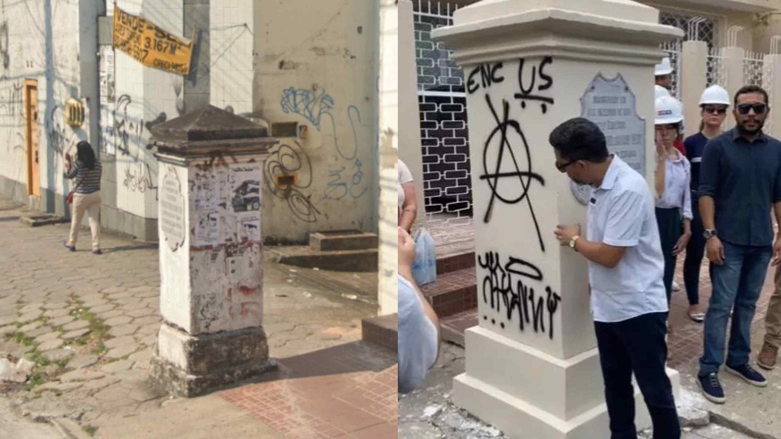 MANAUS (AM) – O obelisco histórico, que homenageia a fundação da Avenida Constantino Nery, na zona Sul de Manaus, foi pichado menos de uma semana após ser restaurado voluntariamente por estudantes do Centro Universitário Fametro.