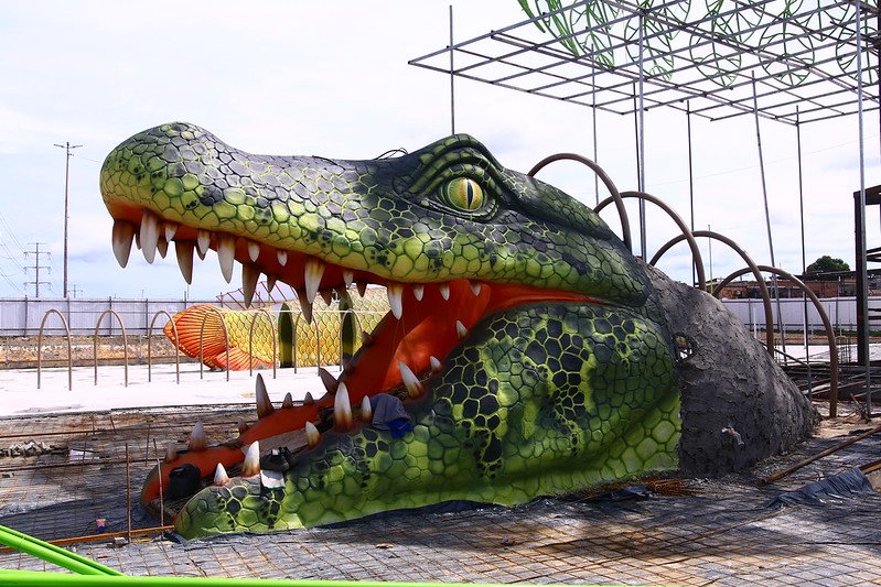 Entre ferros moldados e esculpidos, operários seguem executando os cenários com vários níveis de conclusão e acabamento. A construção terá cenários interativos temáticos, com rampas de escalada, escorregadores, área molhada, entre outros. Todas as figuras ligadas à floresta serão manuseadas como brinquedos lúdicos para as crianças e interativos para os adultos.