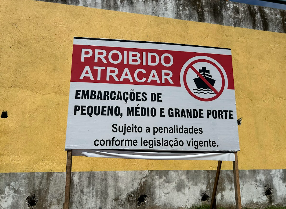 Durante as gravações, também foi mostrada uma placa instalada no local, alertando para que nenhuma embarcação atraque na área.