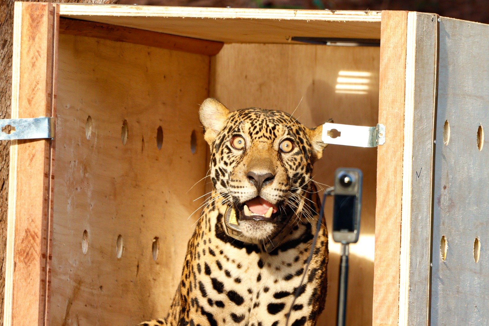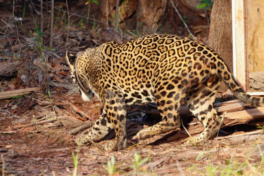 Para retornar à floresta, o animal recebeu uma coleira GPS cedida pelo Instituto Onça-Pintada. “Esse colar vai nos mostrar os corredores ecológicos que ele percorre, se se aproxima de comunidades e como estabelece território. Ele registra localização a cada hora e deve funcionar por até 24 meses”, informou Amaral.