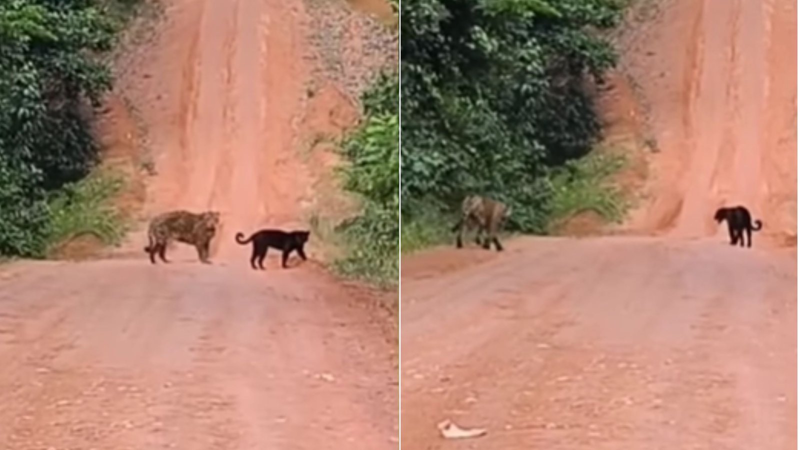 Duas onças são flagradas em estrada em Parintins