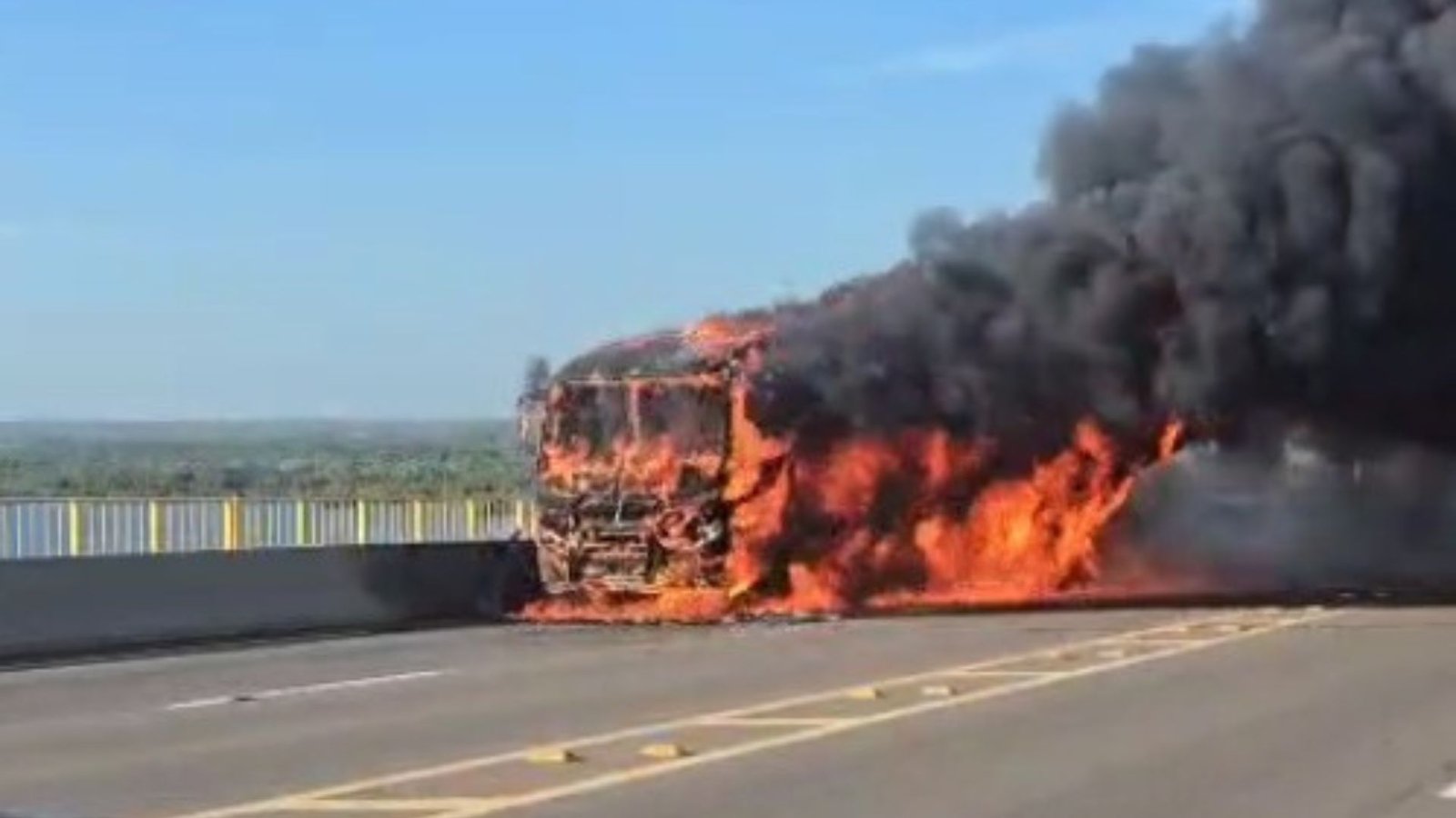 MANAUS (AM) – Um ônibus de uma empresa privada foi totalmente destruído por um incêndio na manhã desta terça-feira, 2/9, enquanto trafegava pela Ponte Jornalista Phelippe Daou, conhecida como Ponte Rio Negro, no sentido Iranduba–Manaus.