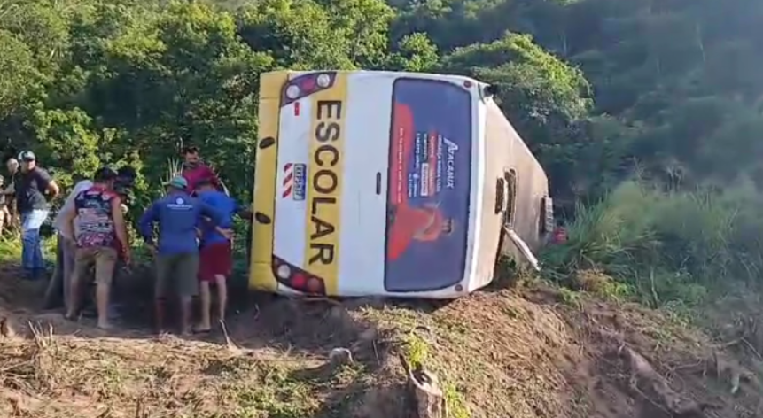 MANAUS (AM) – Dois estudantes, de 13 e 16 anos morreram e 31 ficaram feridos após um ônibus escolar da Prefeitura de Pilões tombar nesta nesta terça-feira, 1/4, na PB-077, na Paraíba. O acidente aconteceu em uma área da via conhecida como Ladeira do Espinho, que liga os municípios de Pilões e Cuitegi.