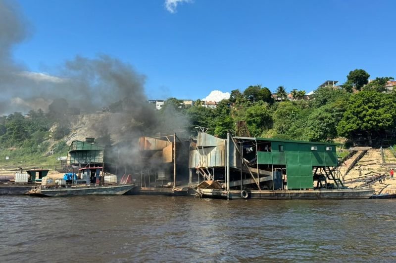Operação destrói balsas de garimpo ilegal na Orla do São Raimundo