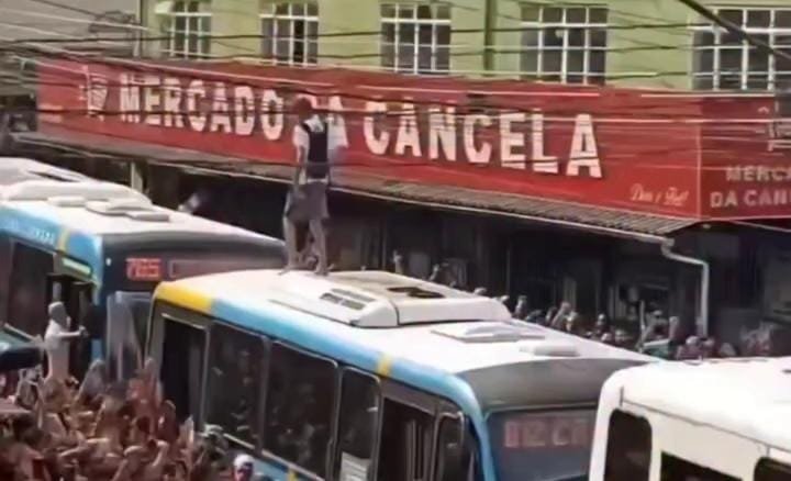 Um vídeo que circula nas redes mostra Oruam tirando a camisa enquanto caminha sobre o veículo, que pertence ao sistema de transporte público do Rio. A atitude do artista foi celebrada por uma grande multidão que aguardava, do lado de fora do presídio, a soltura de MC Poze.