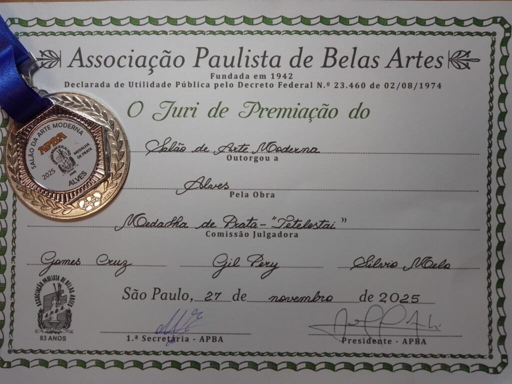 MANAUS (AM) – O artista plástico e empreendedor do segmento cenográfico Elizandro Alves, natural de Parintins (AM), foi duplamente premiado no Salão de Arte Moderna, realizado na sede da Associação Paulista de Belas Artes (APBA), em São Paulo. As premiações ocorreram nos dias 27 de novembro e 10 de dezembro, com a participação de artistas de diversos estados brasileiros. A cerimônia oficial de entrega das honrarias foi realizada no dia 13 deste mês.