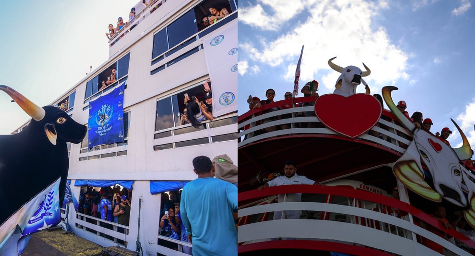 MANAUS (AM) – Aproximadamente 900 pessoas chegaram em Parintins, para festejar os bois Caprichoso e Garantido. receberam reforço de com a chegada dos barcos dos bumbás em Parintins (a 369 quilômetros de Manaus). As agremiações trazem torcedores e membros dos bois para reforçar as galeras durante as apresentações, além de grupos de dança e membros da marujada e batucada, por meio do Movimento Amigos do Garantido (MAG) e Movimento Marujada.