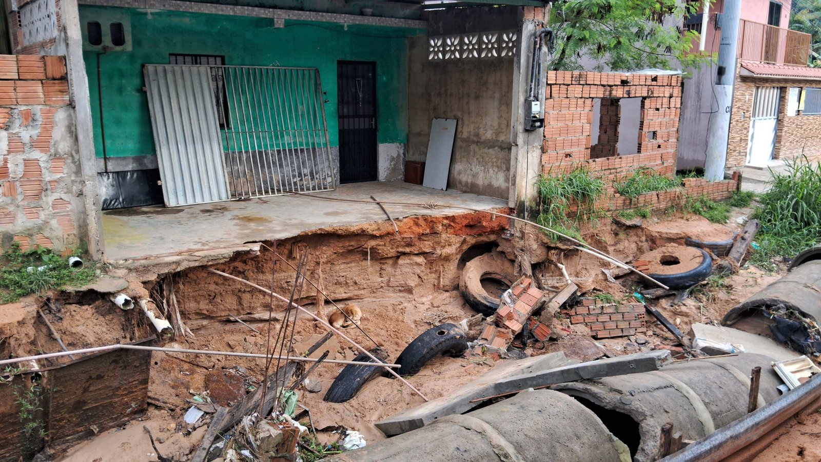 De acordo com o administrador comunitário Daniel Pablo da Silva, o solo encharcado fez com que parte da estrutura de uma casa cedesse.