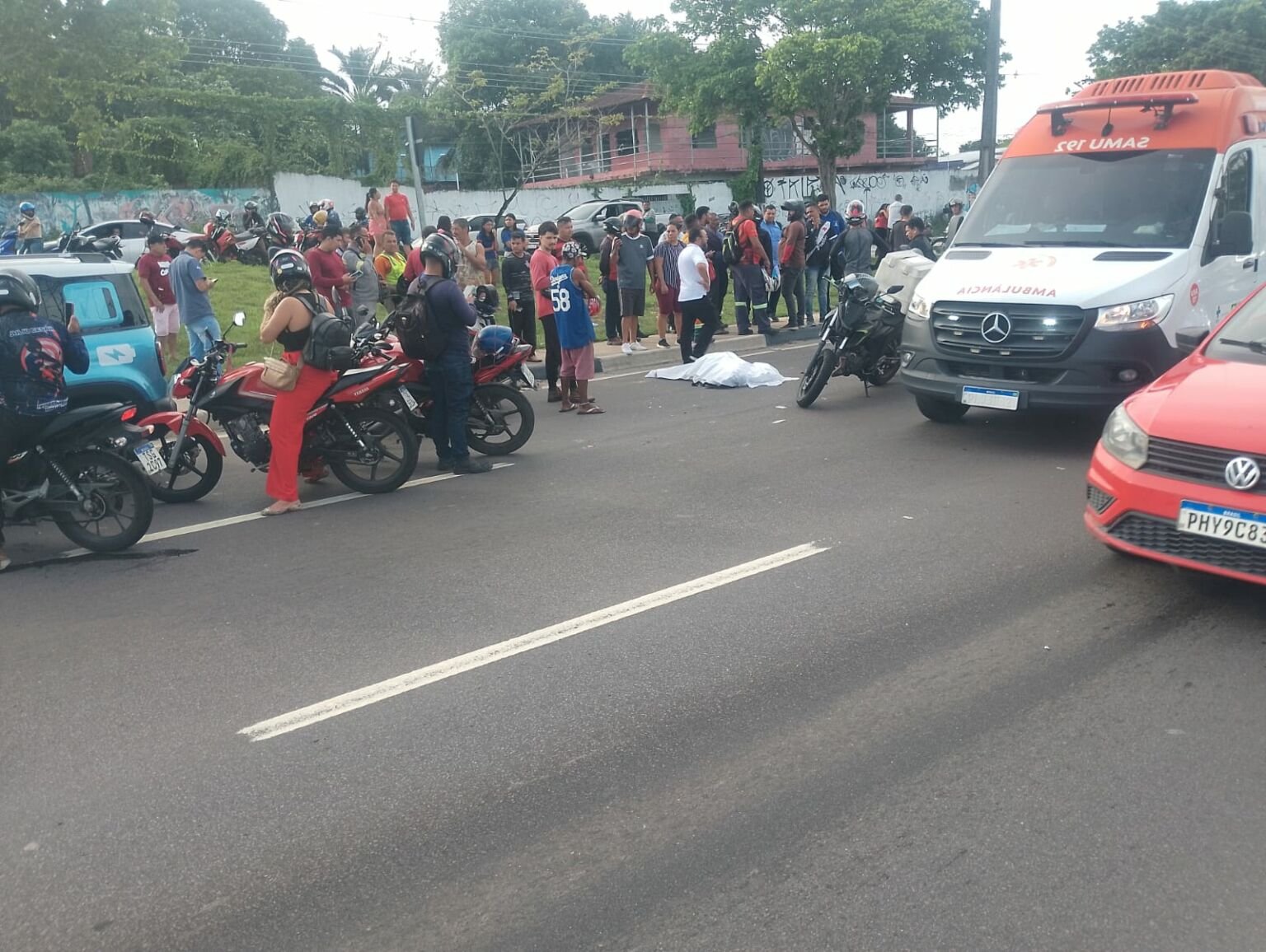 Equipes do Serviço de Atendimento Móvel de Urgência (Samu) foram acionadas e prestaram atendimento ao motociclista, enquanto o óbito da passageira foi constatado ainda no local. O corpo foi removido pelo Instituto Médico Legal (IML).