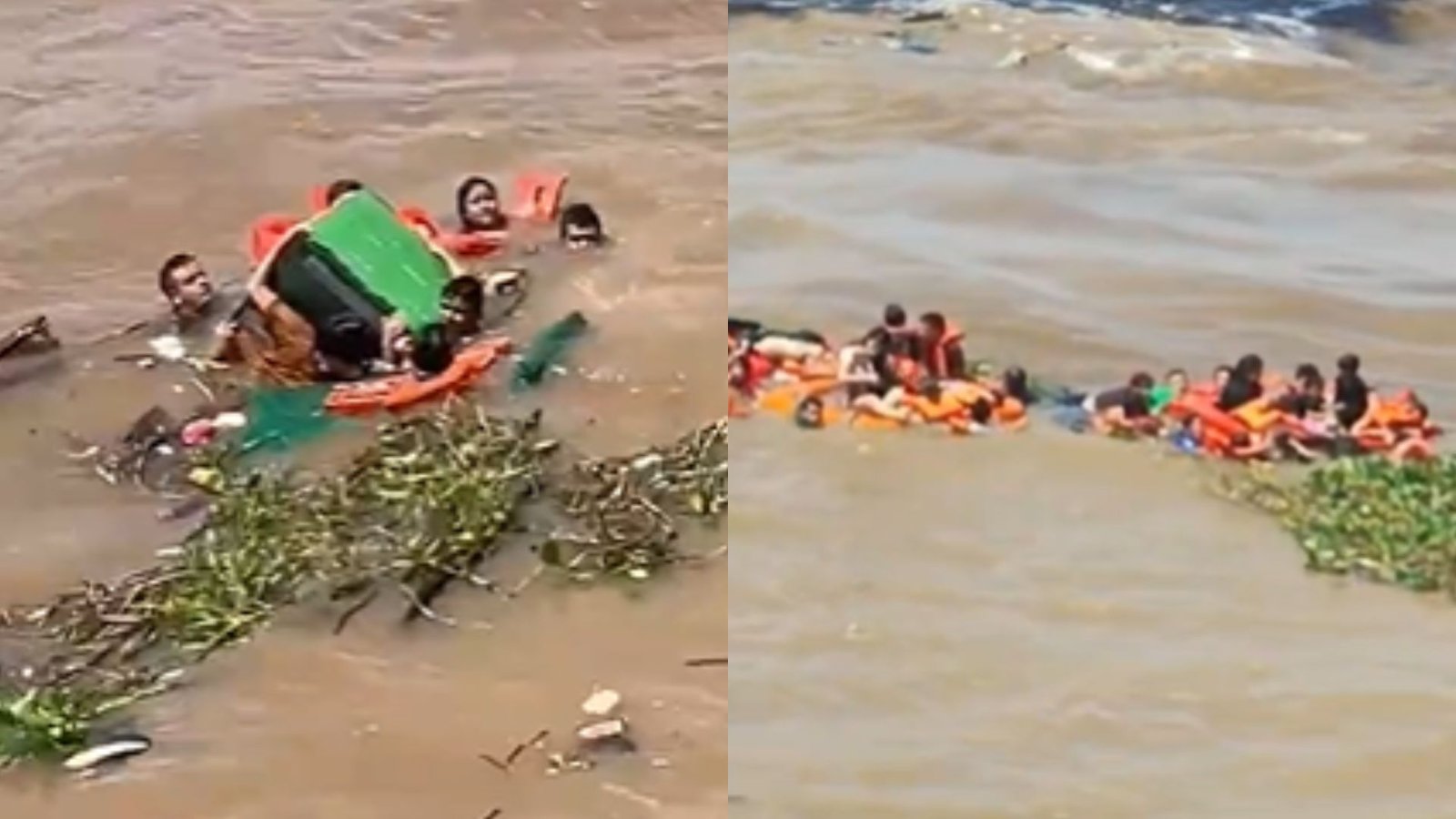 Imagens que circulam nas redes sociais mostram passageiros dentro do rio, alguns em botes salva-vidas, aguardando o resgate. Entre eles, havia crianças, jovens e mulheres. Testemunhas relataram que ventos fortes e banzeiros na região podem ter contribuído para o acidente.