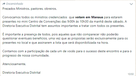 Ambos negaram que tinham o objetivo de comprar votos para David Almeida, e que usaram a expressão “votar em Manaus” na convocação, para restringir a participação apenas aos pastores que votam na capital amazonense, pois não seria viável convocar os líderes do Interior.