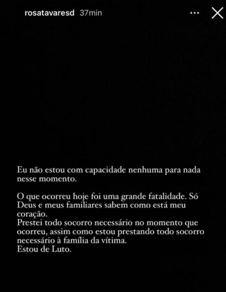 A proprietária do veículo envolvido no acidente é a influencer e empresária Rosa Tavares, de 25 anos, que acumula mais de 50 mil seguidores nas redes sociais. Nas redes sociais, Rosa descreveu o acontecimento como uma “grande fatalidade”. As circunstâncias exatas do acidente ainda estão sendo investigadas.