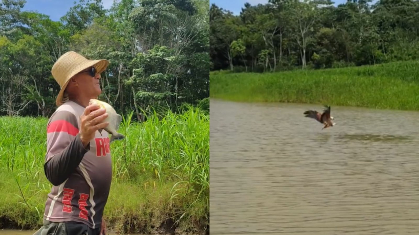 MANAUS (AM) – m vídeo gravado pelos pescadores Renner Maia e Aldenor Ribeiro, que viralizou nas redes sociais, mostra um gavião se alimentando de uma piranha oferecida pelos próprios pescadores após o animal ajudá-los a localizar cardumes na região dos Lagos do Macuricanã, próximo à comunidade Bom Sucesso, no Amazonas.