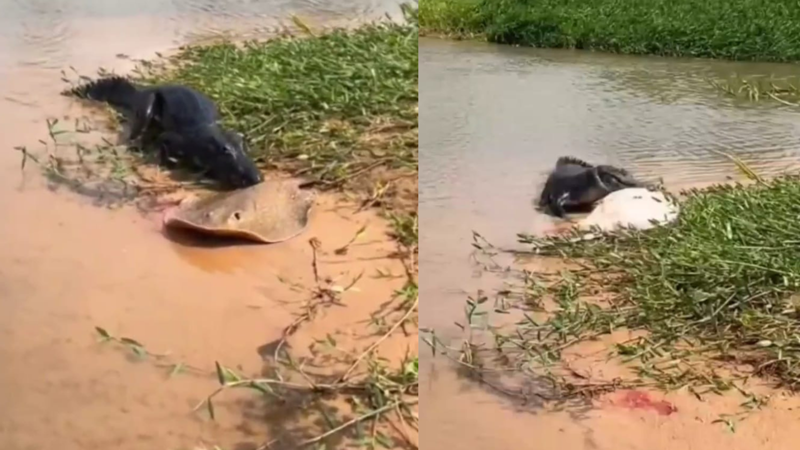 Na gravação, é possível ver o jacaré desferindo mordidas na arraia, que tenta se defender com ferroadas — seu principal mecanismo de defesa. Apesar da tentativa de reação, o animal não resistiu à gravidade dos ferimentos.