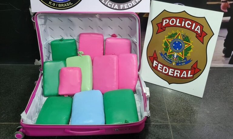Durante inspeção de rotina, uma mulher foi flagrada com 12kg de maconha. Os policiais identificaram um pacote suspeito em uma mala despachada para um voo com destino final em Curitiba (PR).