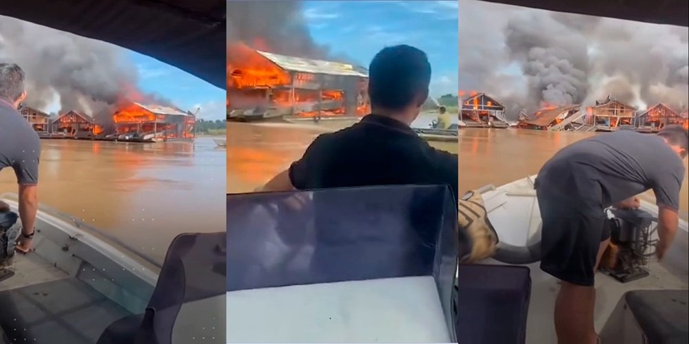 Um total de seis dragas e balsas foram queimadas