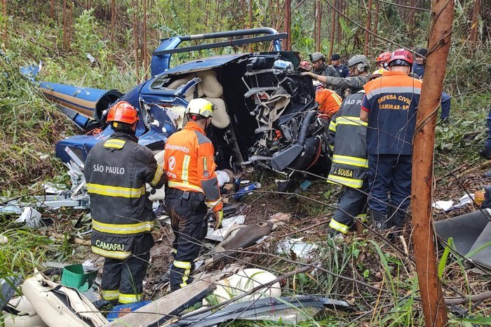 Posteriormente, o casal foi encontrado sem vida próximo aos destroços do helicóptero. As equipes continuam no local.