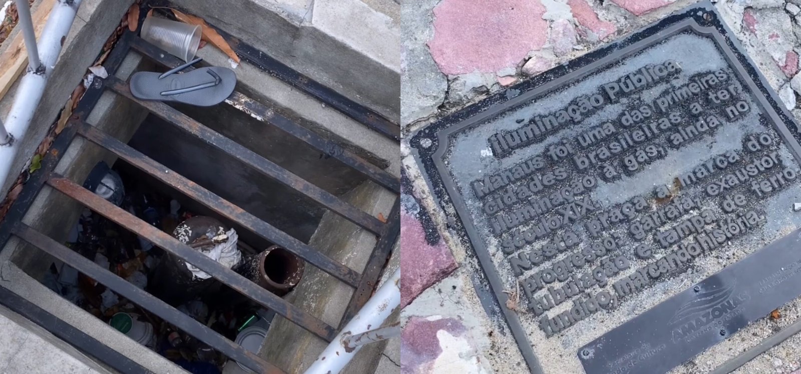 A peça, composta por garrafa, exaustor, tubulação e tampa de ferro fundido, marca o período em que a capital foi uma das primeiras cidades brasileiras a adotar esse sistema. No vídeo, o autor lê a placa histórica instalada no local e destaca que a tecnologia era usada muito antes da energia elétrica.