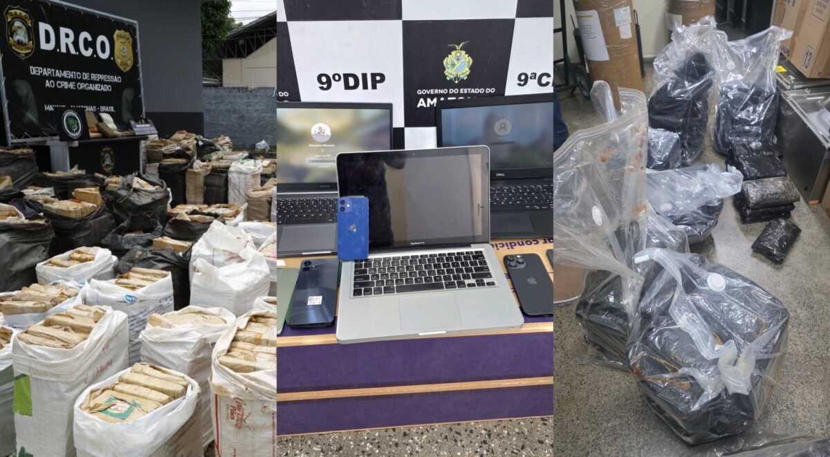 MANAUS (AM) – Cerca de 4,5 toneladas de drogas do tipo skunk, avaliadas em mais de R$ 86 milhões, foram apreendidas durante uma operação policial no Amazonas. A ação também resultou na prisão em flagrante de um homem, além da apreensão de uma balsa, um empurrador e dois botes de pequeno porte utilizados no transporte da carga ilícita.