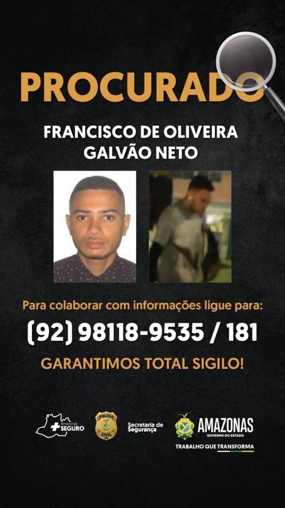 A Polícia Civil do Amazonas (PC-AM) informa que denúncias sobre o paradeiro dos envolvidos podem ser repassadas pelos números (92) 98116-9099 ou pelo disque-denúncia 181, da Secretaria de Estado de Segurança Pública (SSP-AM).
