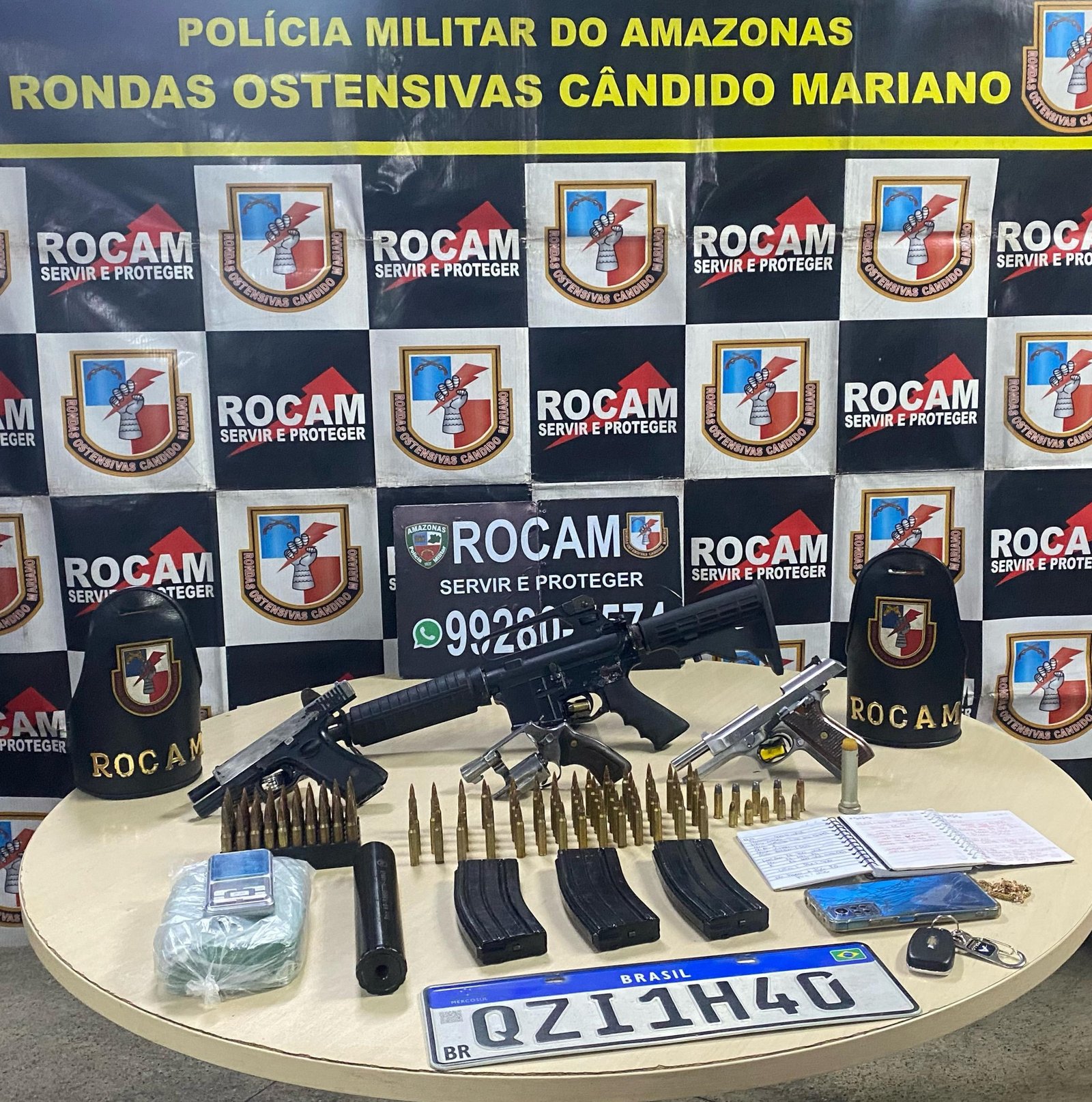 No local indicado, a equipe policial encontrou um casal integrante do grupo. Durante a abordagem, foram apreendidos um fuzil; uma pistola; 70 munições de calibre 5.56; 50 munições de calibre 7.62; cinco munições de calibre 38 e cinco munições de calibre 9 milímetros.