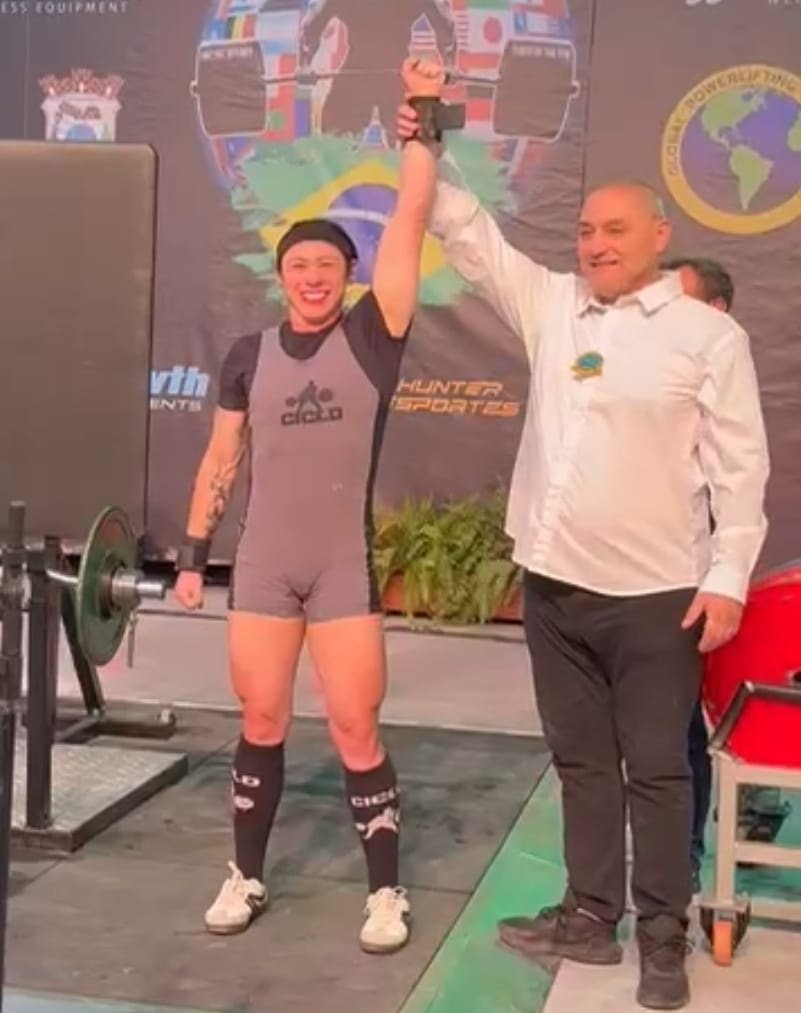 O título de campeã recordista mundial foi conquistado entre os dias 22 e 26 de outubro, durante o Campeonato Mundial de Powerlifting CPG 2025, que reuniu mais de mil atletas de 20 países, no Maria’s Camboriú, em Santa Catarina.