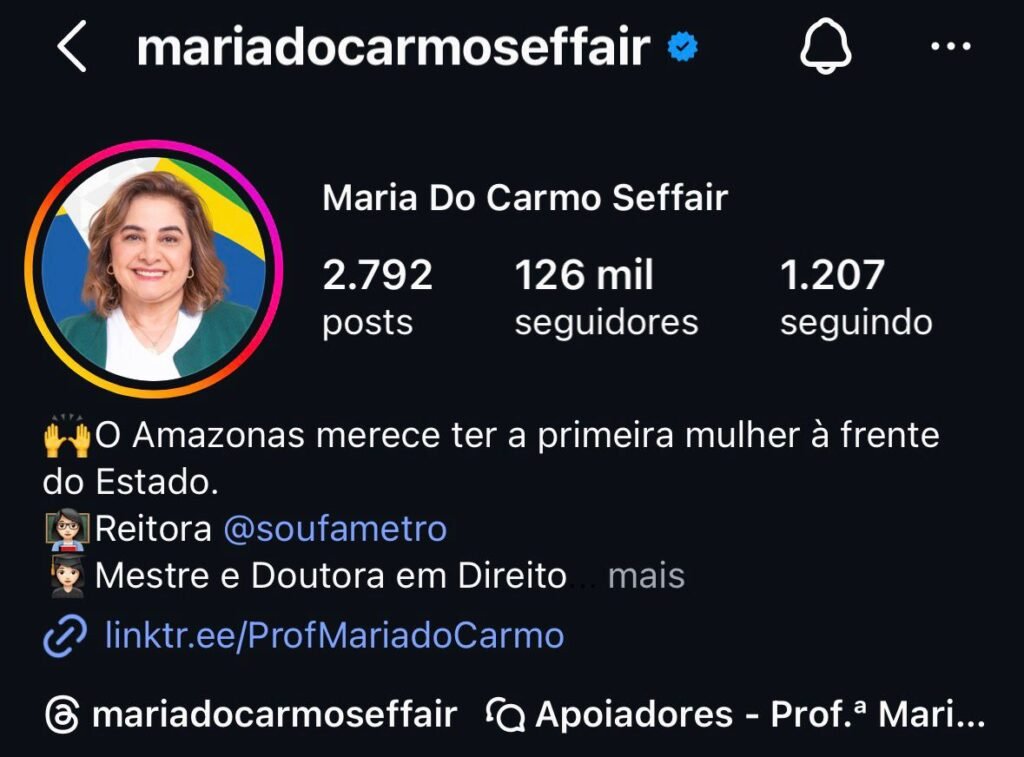 Atualmente, ela mantém uma diferença de mais de mil seguidores e confirma a adesão contínua do eleitor às suas propostas. Nos últimos 30 dias, a pré-candidata conquistou 3 mil novos seguidores em sua conta oficial no Instagram – @mariadocarmoseffair –, com mais de 10 milhões de visualizações nesse período.