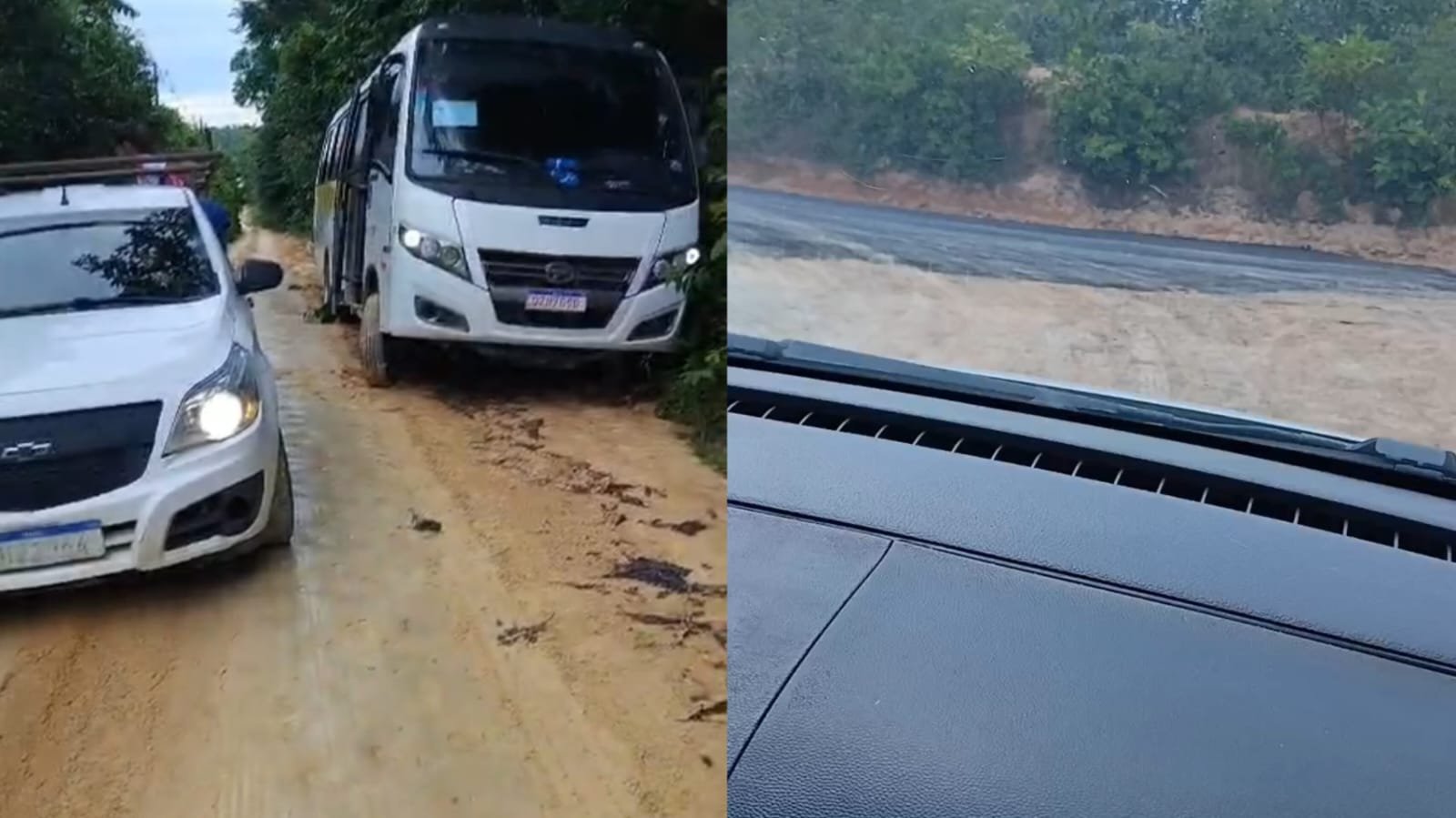 Em vídeo enviado ao Portal RIOS DE NOTÍCIAS, é possível ver um ônibus escolar que ficou encalhado em um trecho ainda não asfaltado. Segundo relatos, a situação tem prejudicado o deslocamento diário de moradores e estudantes. “A gente aqui que é morador sabe a realidade do nosso ramal”, afirma um dos trechos registrados.