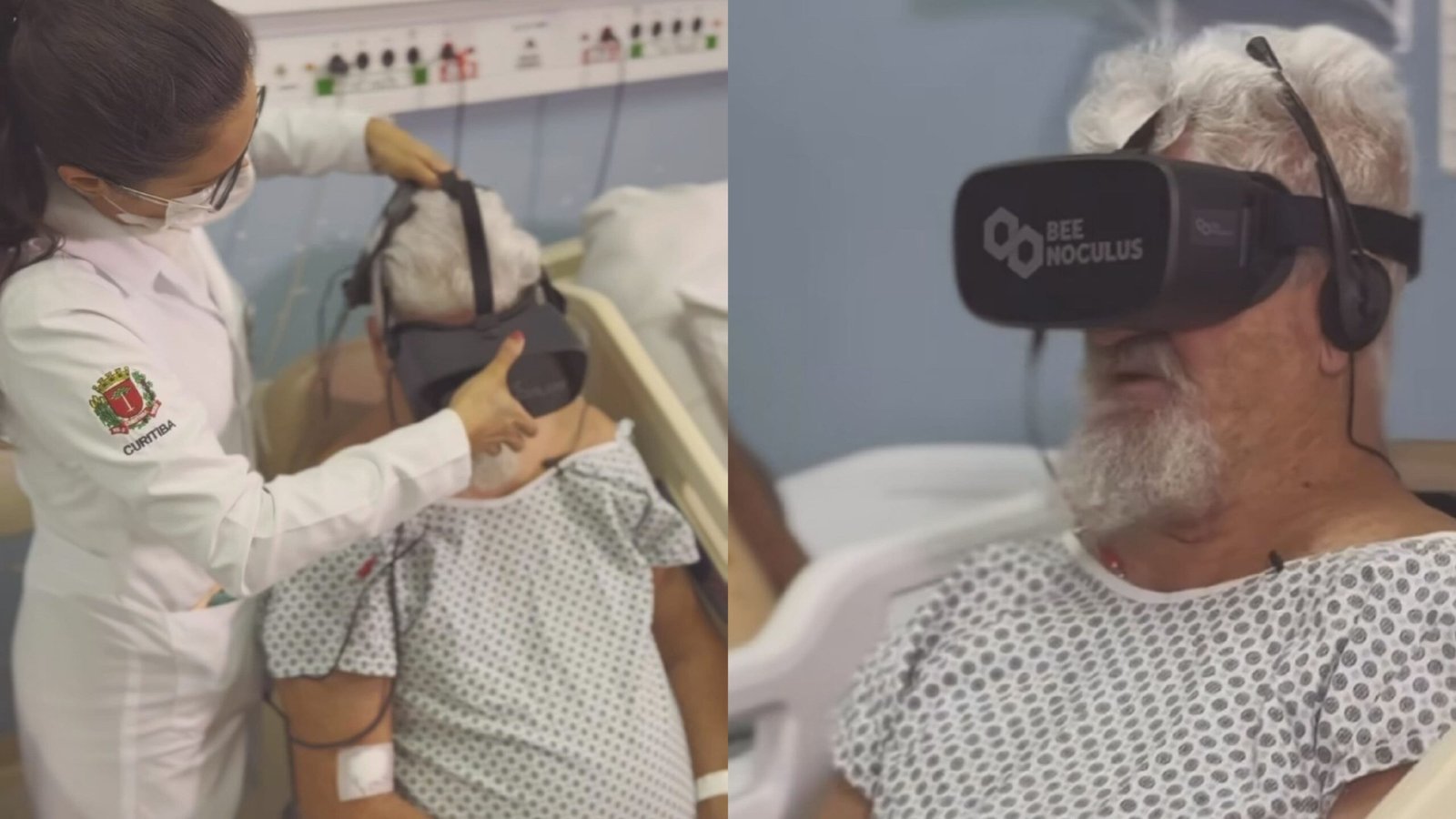 A experiência natalina foi feita por meio de óculos 3D, onde os idosos puderam assistir aos filmes de divulgação do Natal de Curitiba por meio da realidade virtual.