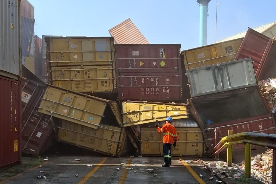 Vários contêineres tombaram no pátio do terminal, causando preocupação e mobilizando as equipes operacionais do local