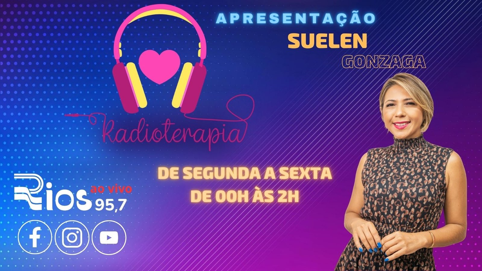 MANAUS (AM) – A Rádio RIOS 95,7, que completa quatro meses nesta sexta-feira, 21/7, apresenta em sua grade de programação, inclusive nas madrugadas, programas cujas propostas prometem levar aos ouvintes um espaço de reflexão e auxílio emocional, como o “Radioterapia”, que vai ao ar de meia-noite às 2h, e é apresentado por uma das pratas da casa, a radialista Suelen Gonzaga, que comanda o programa especial, abordando temas importantes como relacionamentos, vida profissional e superação de traumas.